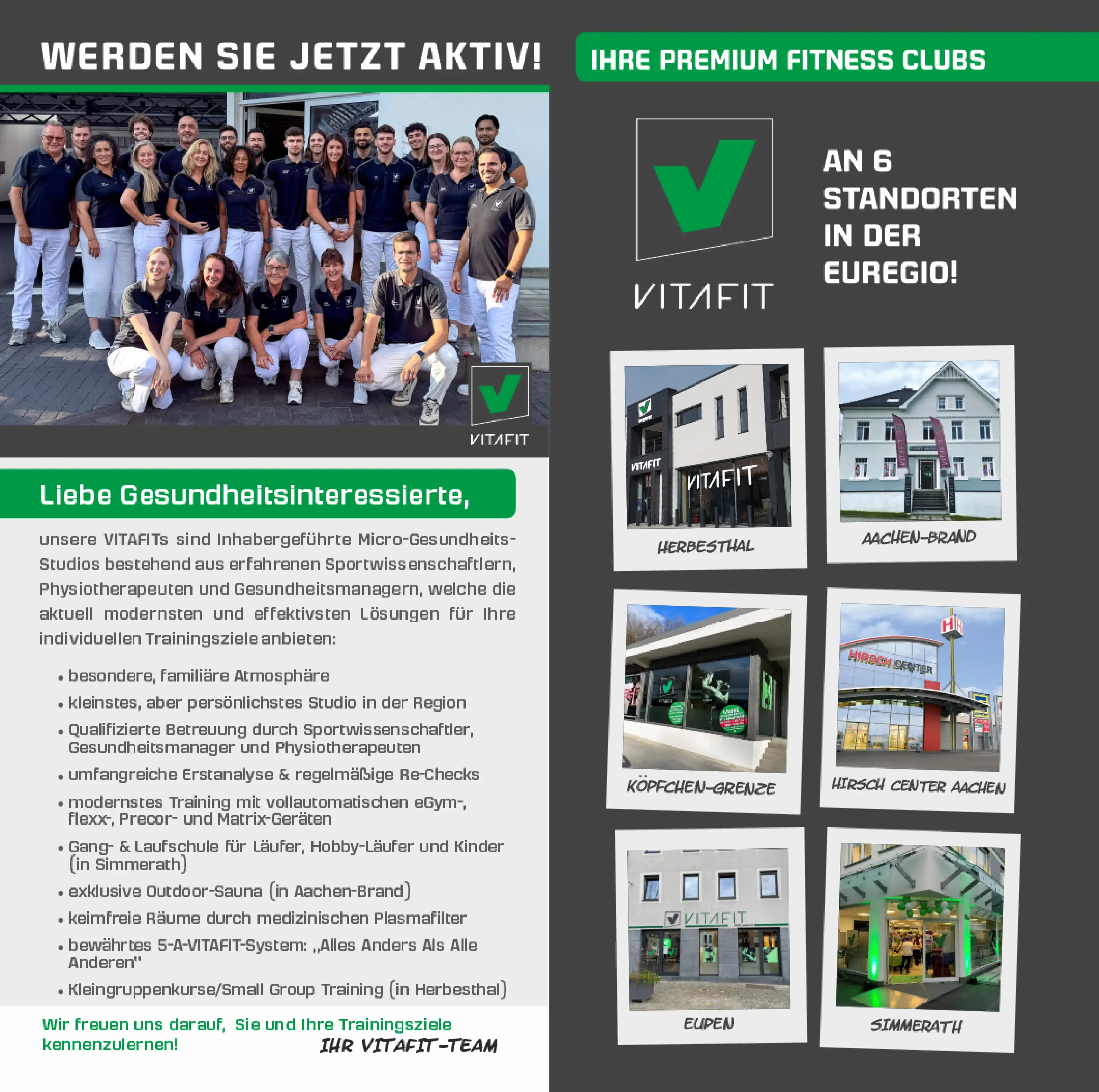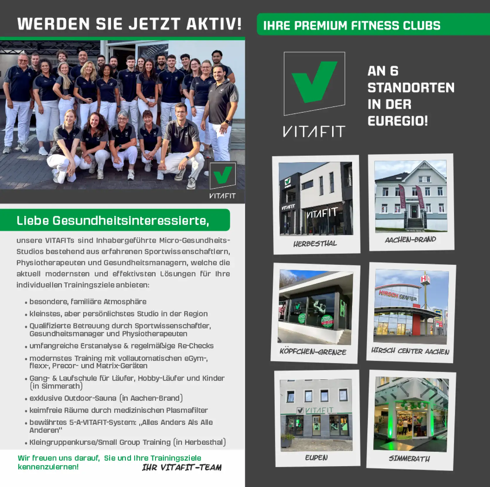 Aktiv werden, um fit und gesund jeden Tag zu genießen. Macht maximal Spaß bei Vitafit Simmerath.
